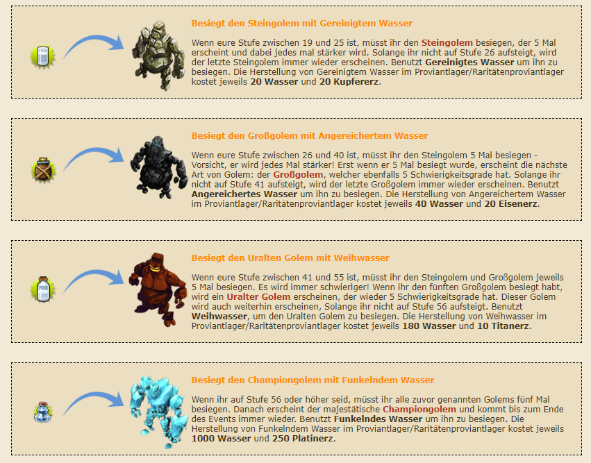 und es ist eure Aufgabe sie erneut zu besiegen, egal ob es Steingolems, Großgolems, Uralte Golems oder Championgolems sind.