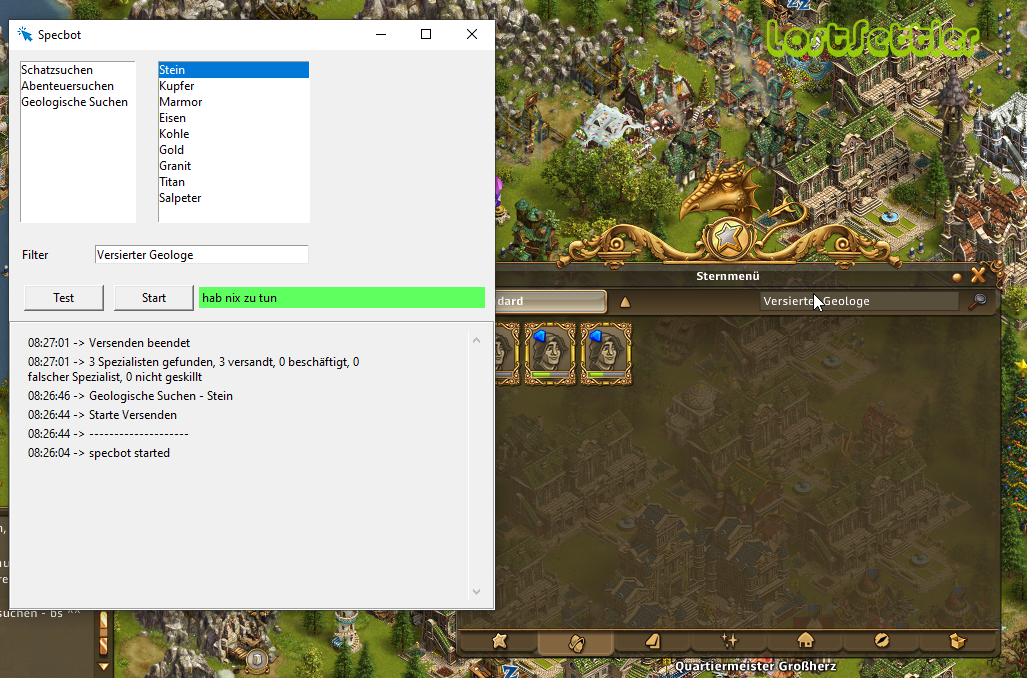 Mit diesem Programm kann man mit einem Klick seine Sucher oder Geologen lossenden.