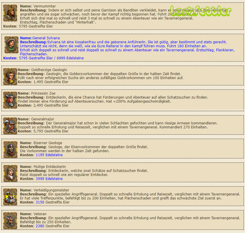 Was ich persönlich schade finde, dass es den Boris und den MDK wieder nicht gibt. Schon letztes Jahr war er nicht beim Kaufmann für Ostereier zu erwerben. Gerade für neue Spieler wären beide Generäle interessant. Da werden einige neue Siedler enttäuscht sein.