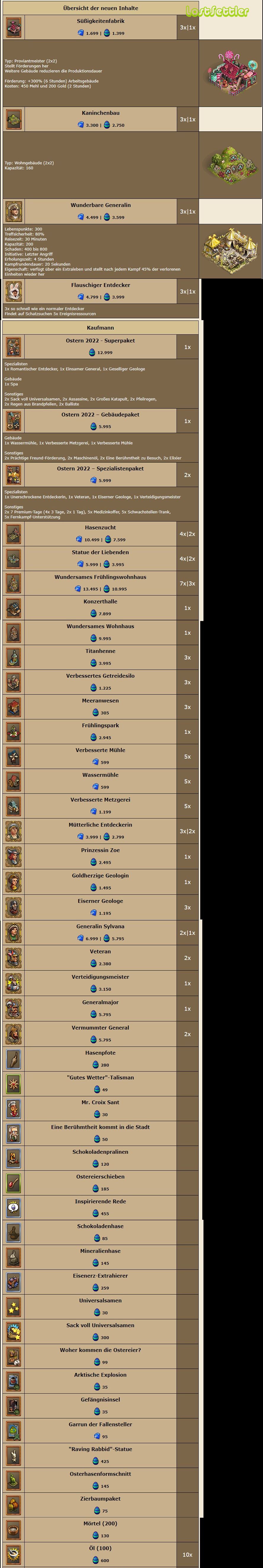 Was ich persönlich schade finde, dass es den Boris und den MDK wieder nicht gibt. Schon letztes Jahr war er nicht beim Kaufmann für Ostereier zu erwerben. Gerade für neue Spieler wären beide Generäle interessant. Da werden einige neue Siedler enttäuscht sein. Aber, dafür gibt es dieses Jahr Generalin Sylvana !